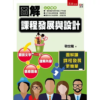 本書的結構與編排係符合當代圖像思考與學習的需求,將文字內容加以重新整理安排,並利用學習的原理,將課程發展與設計的內容加以圖像化、表格化,一頁文字及一頁圖表的搭配,促進閱讀者閱讀興趣,並輔以一頁重點文字摘述,也引導閱讀者文字閱讀能力,最後提供課程發展與設計的實務案例,提供實務參酌。